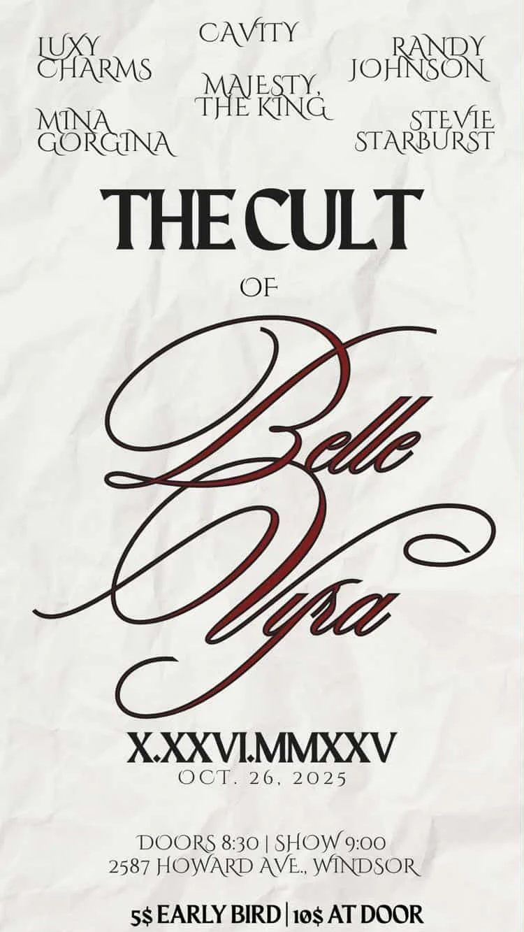 This October, Luxy celebrates her fourth drag birthday with two major events: Ryan & Steve’s 6th Annual Halloween Bash Extravaganza (Saturday, October 25 – invite only) and The Cult of Belle Vyra (Sunday, October 26 at The Barbershop Bar), featuring a killer lineup of Windsor’s finest creatures of the night.
