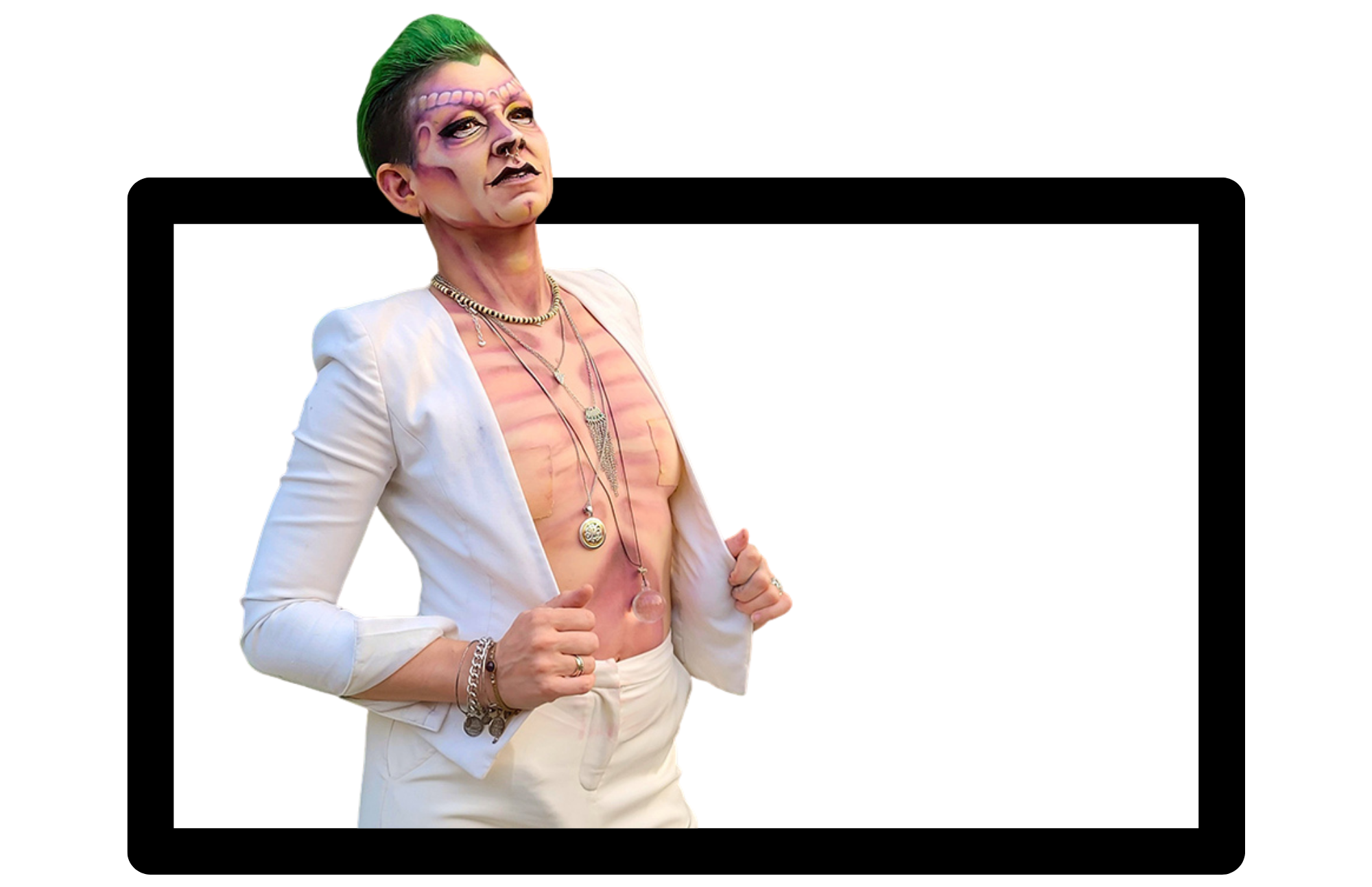 Bae B. Butcher is what happens when a B-rated horror flick comes to life — sex, camp, creep, and just enough chaos to keep you on edge. A celebrated drag king from Hamilton’s “Steeltown,” Bae has carved out a lane that is unapologetically political, wildly creative, and impossible to ignore. From international stages to local alternative drag shows, Bae B. Butcher isn’t just performing — he’s pushing boundaries, challenging norms, and proving that drag has no rules.